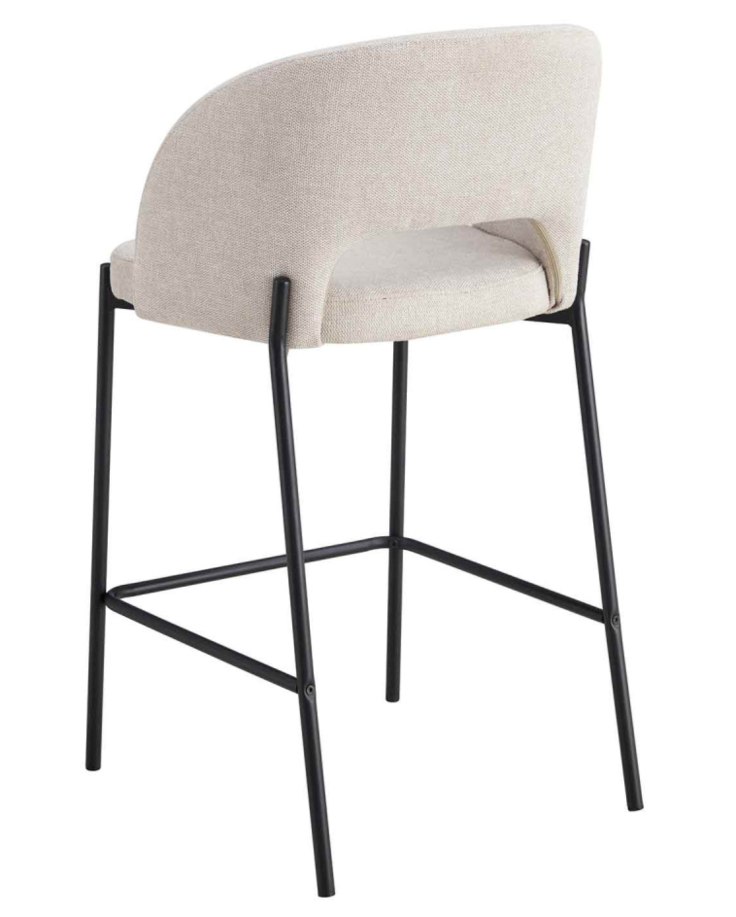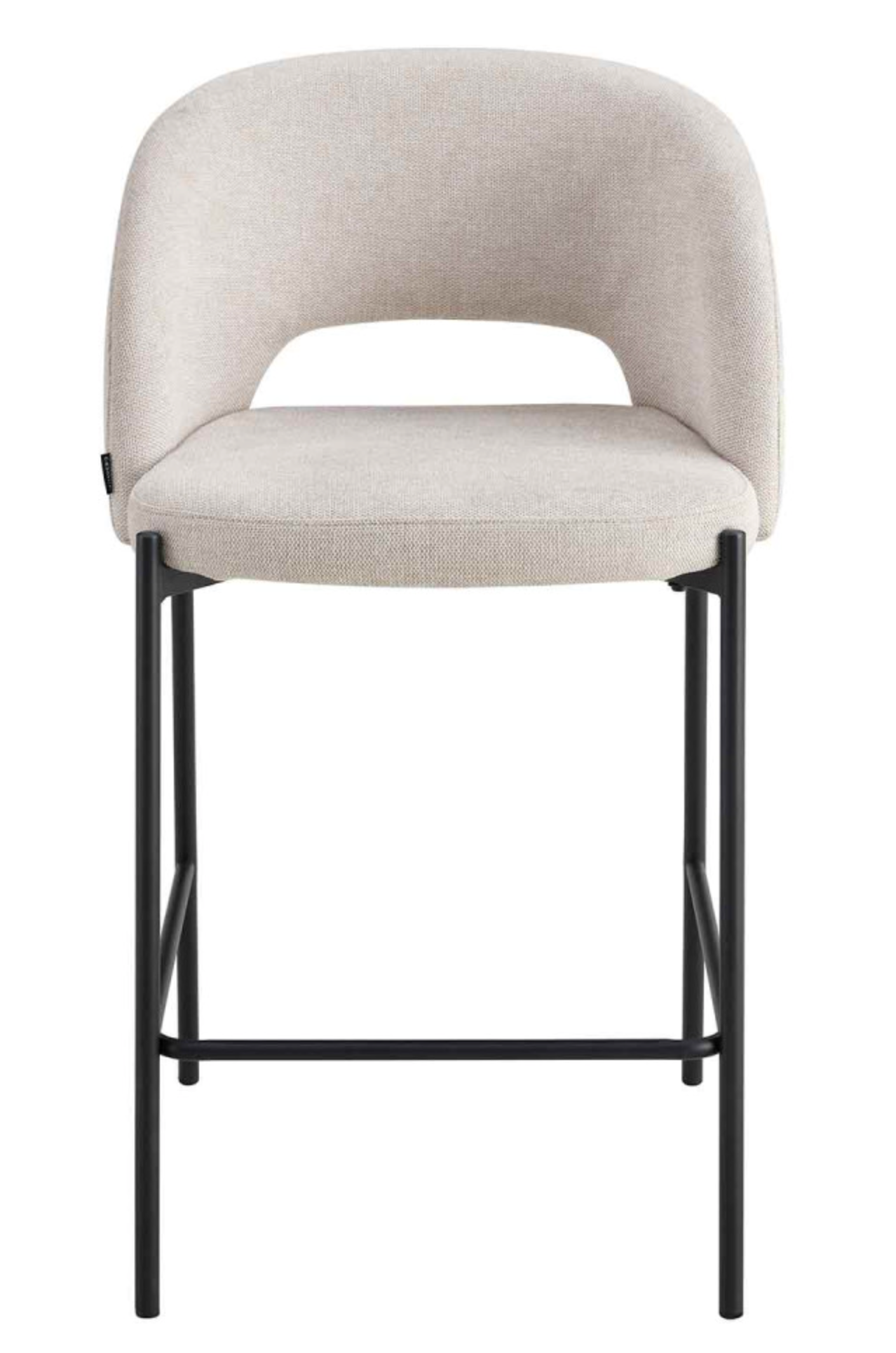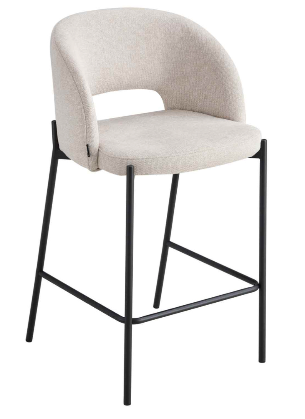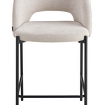 Material: Tapizado textil color arena, interior de madera contrachapada y foam, patas metálicas negras.