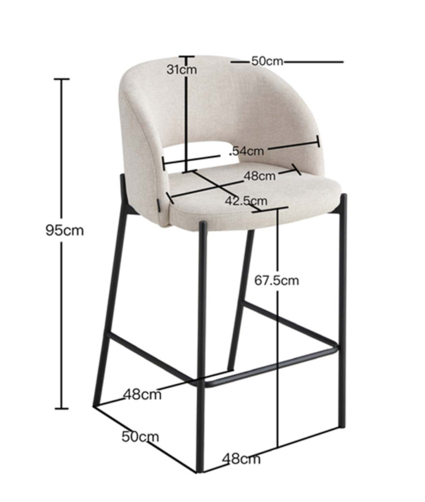 Medidas: 48 x 50 x 95 cm, altura del asiento 67,5 cm